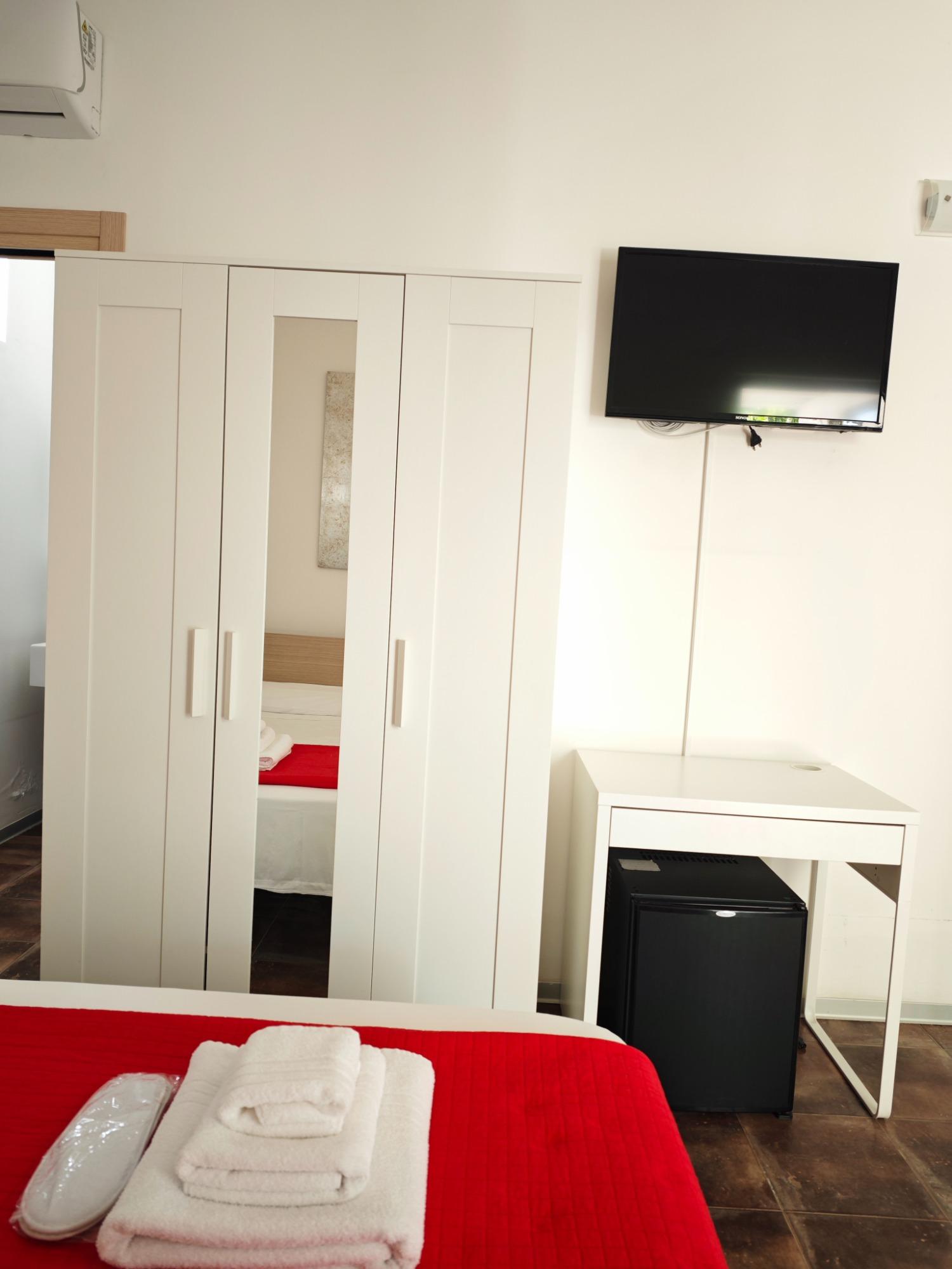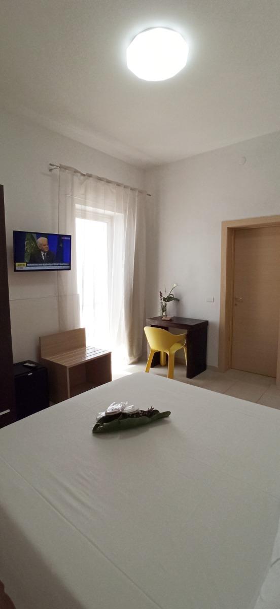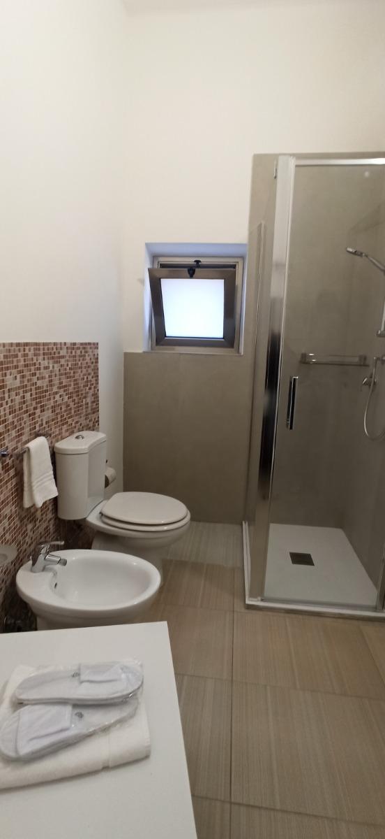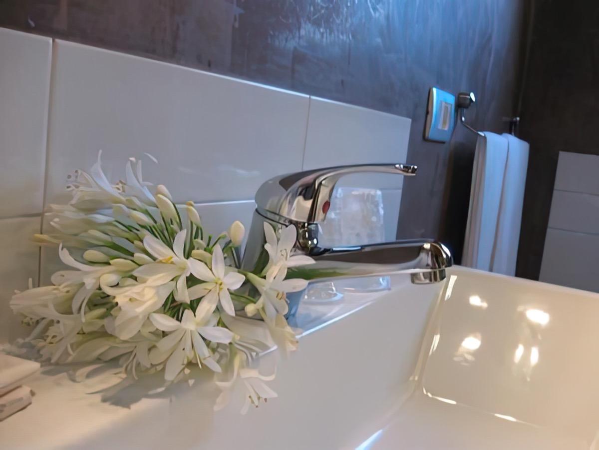 The exterior of Torrefano B&B resembles that of an ancient fortification, but with a contemporary twist. The one-story building boasts a spacious outdoor patio equipped with a pool, sun loungers, and surrounded by a Mediterranean garden filled with beautiful flowers and plants such as sterlizie, oleanders, laurels and dwarf palms.